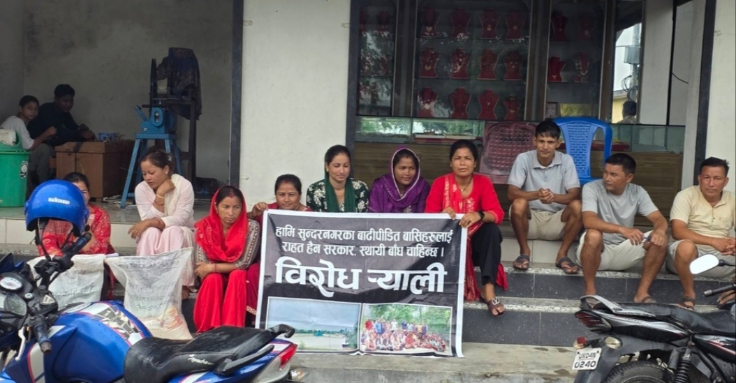कञ्चनपुर- प्लास्टिकको बोरामा चामल, दाल, नुन, तेललगायत सामग्रीका पोका बोकेर दोधारा चाँदनी नगरपालिका–८ सुन्दरनगरका बाढी पीडित शनिबार चाँदनी बजारको चोकमा बसेका थिए । गृहमन्त्री रमेश लेखक दोधारा चाँदनी पुगेको खबर पाएपछि उनीहरू सरकारलाई उपहार दिन उक्त राहत सामग्री बोकेर आएका हुन् । त्यसको दुई दिनअघि उनीहरूले दोधारा चाँदनी नगरपालिकाको कार्यालयमा पुगेर नगरप्रमुख किशोर लिम्बुलाई राहत उपहार दिन खोजेका थिए । नगरप्रमुख लिम्बु कार्यालयमा नभेटिएपछि उनीहरू प्रमुख प्रशासकीय अधिकृत गणेश मिश्रालाई ज्ञापन बुझाएर फर्किएका थिए ।