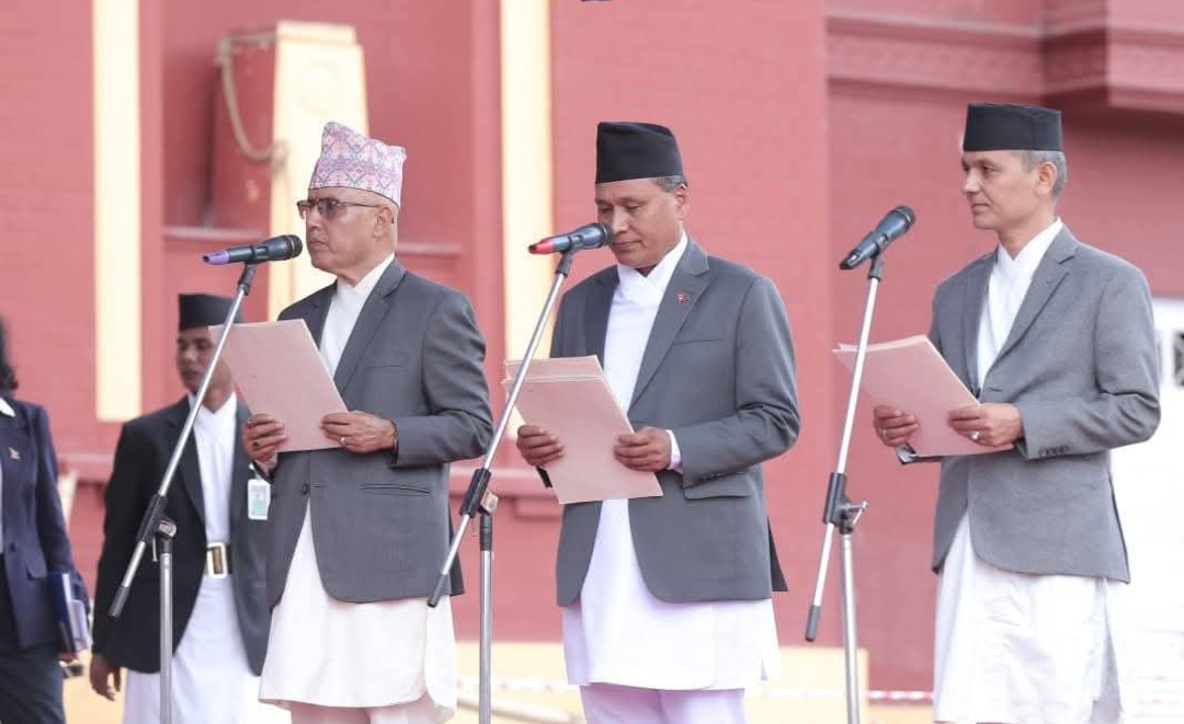 सोमबार राष्ट्रपति भवन शीतल निवासको खण्डहरअगाडि पाल टाँगेर मन्त्रीहरूलाई शपथ दिलाइएको थियो । शपथग्रहण कार्यक्रममा उपराष्ट्रपति रामसहायप्रसाद यादव, प्रधानमन्त्री सुशीला कार्की प्रधानन्यायाधीश प्रकाशमानसिंह राउत, राष्ट्रिय सभा अध्यक्ष नारायण दाहाललगायत उच्चपदस्थ अधिकारी उपस्थित थिए ।