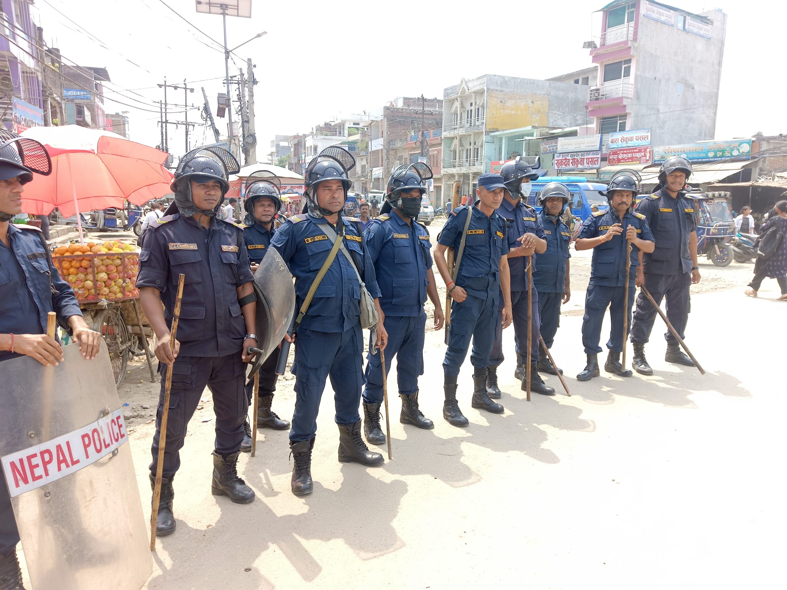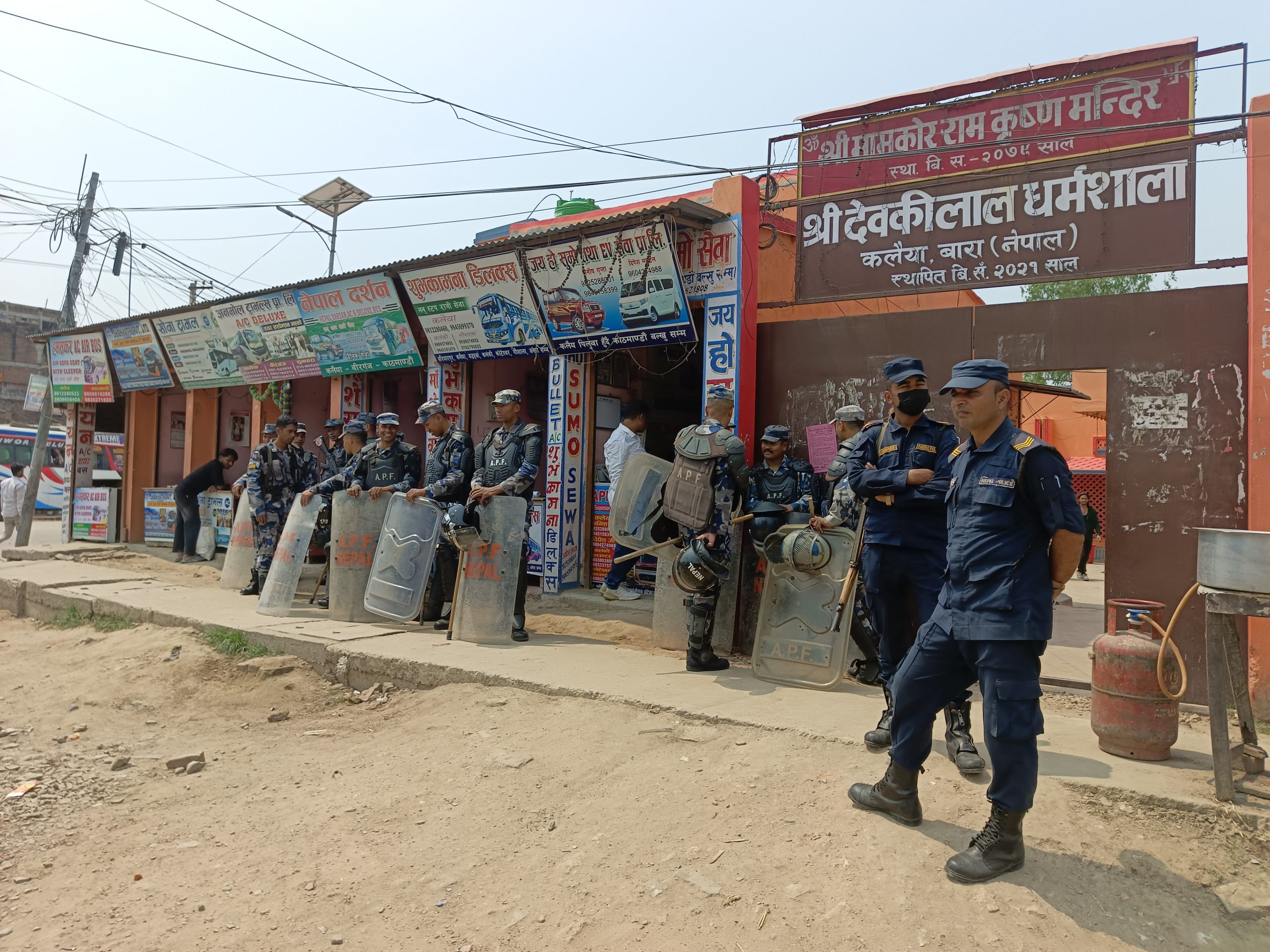 अहिले बारा सदरमुकाम कलैयाकाे मुख्य चाेकमा ठुलाे संख्यामा नेपाल प्रहरी तथा सशस्त्र प्रहरी परिचालन गरिएकाे प्रत्यक्षदर्शीले बाताएका छन ।