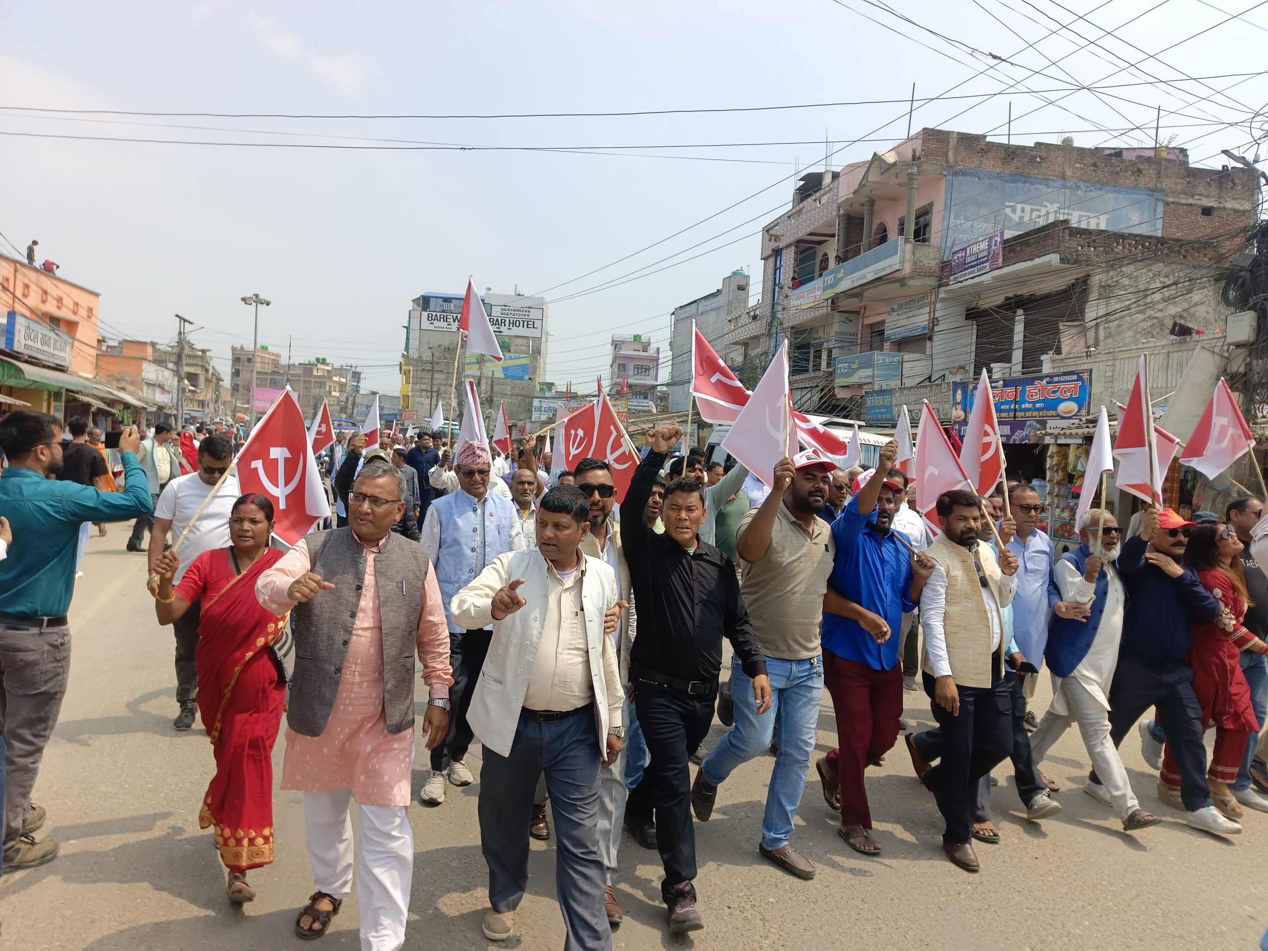 एमाले बाराका अध्यक्ष अध्यानन्द पाण्डेको नेतृत्वमा निस्केको विराेध जुलुसका सहभागीले बालेन सरकार मुर्दावाद, श्रद्धय अध्यक्षलाई रिहा गर, नेकपा एमाले जिन्दावाद लगायतका नारा लगाउदै नगर परिक्रमा गरेका थिए ।